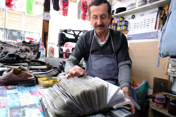 Ayakkabı tamircisi vatandaşların yanı sıra ilçede görev yapmış savcı, ilçe emniyet müdürü ve polis memuru gibi devlet görevlilerinin fotoğraflarını da arşivinde bulunduruyor.