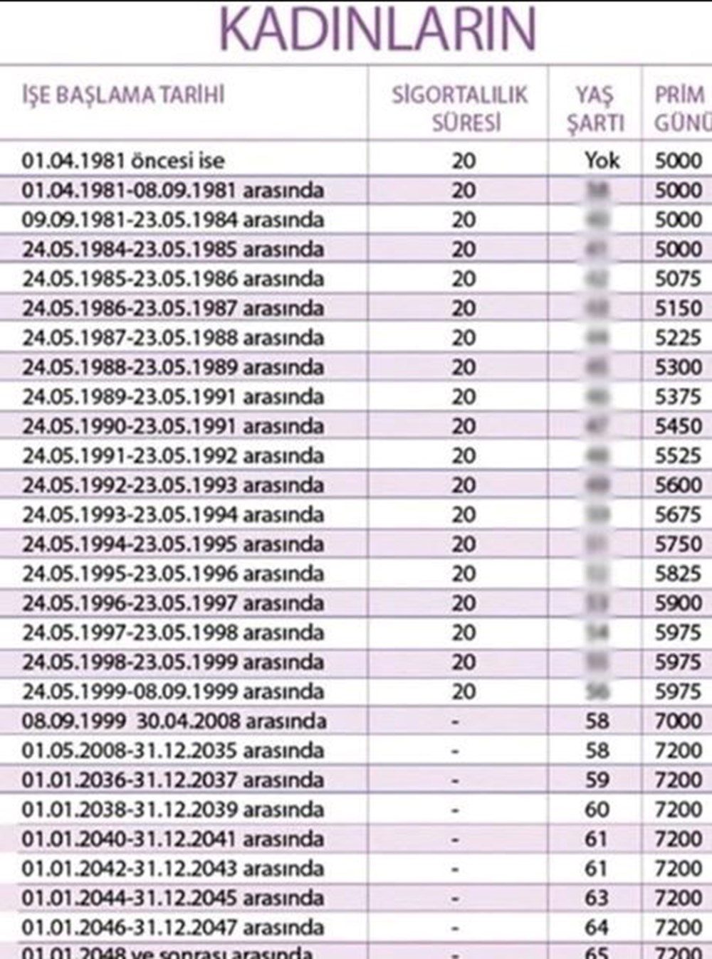 SGK tarafından yayımlanan yıllara göre, sigortalılık süresi ve prim gün sayılarıyla birlikte, EYT’li olmaya hak kazanacak olan kişilerin yıllara göre prim sayıları görülebiliyor.