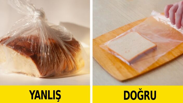 Ekmeği haftalarca taze tutmak için dilimledikten sonra her dilimi ayrı bir plastik torbaya koyun, ardından tüm havasını alın ve sıkıca kapatın. Hava ve nem artık içeri giremeyecek ve küf oluşmayacaktır.