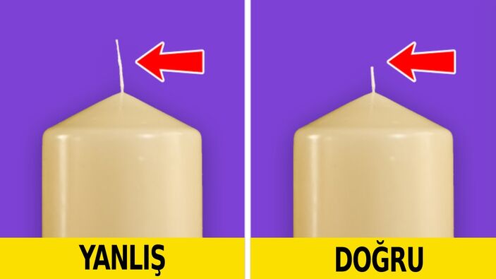 Uzun mum fitilleri, mumu hızla tüketen büyük bir alev oluşturur, ancak ucu ara sıra keserseniz odanın güzel kokmasını sağlayacak ufak bir alev ile mumunuzu kullanabilirsiniz. Hem bu sayede mumdan da tasarruf etmiş olursunuz.