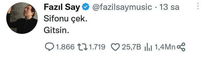 Bunun üzerine masanın dağıldığı dönemde sosyal medya hesabından paylaşımda bulunan piyanist Fazıl Say, Akşener’i kastederek “Sifonu çek gitsin” paylaşımında bulunmuştu. Say’ın paylaşımı sosyal medyada gündem olmuş ve büyük tepki çekmişti. Daha sonra Akşener’in masaya dönmesiyle söz konusu paylaşımını silmişti.