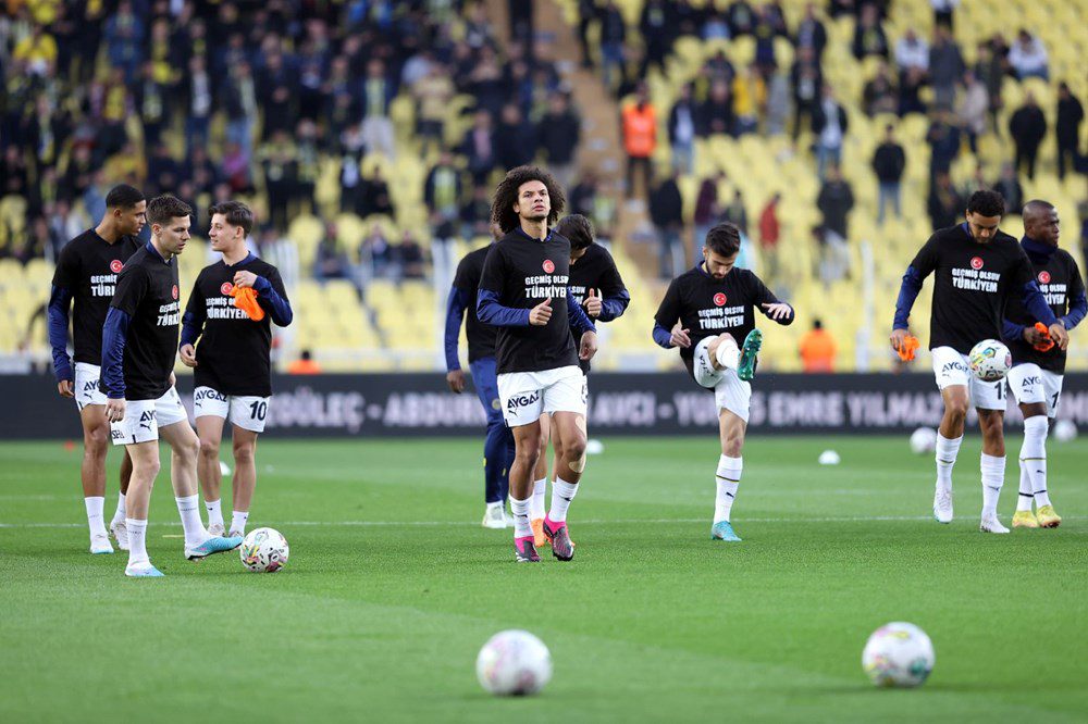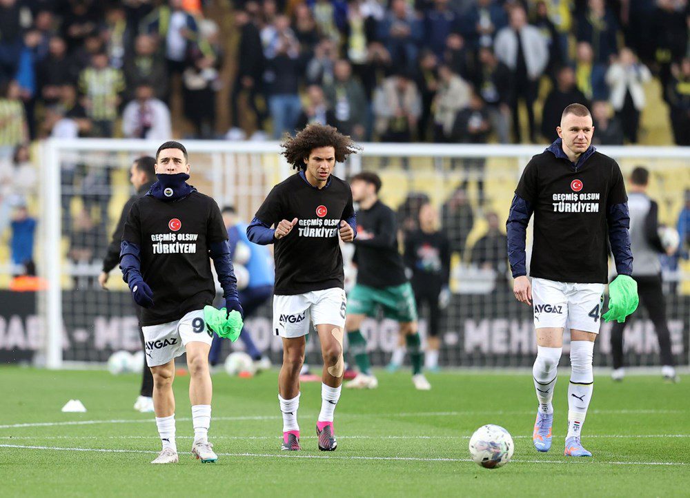 Fenerbahçeli futbolcuların mücadelede giydikleri formaların arkasında ise deprem felaketinin yaşandığı illerin isimleri yer aldı.