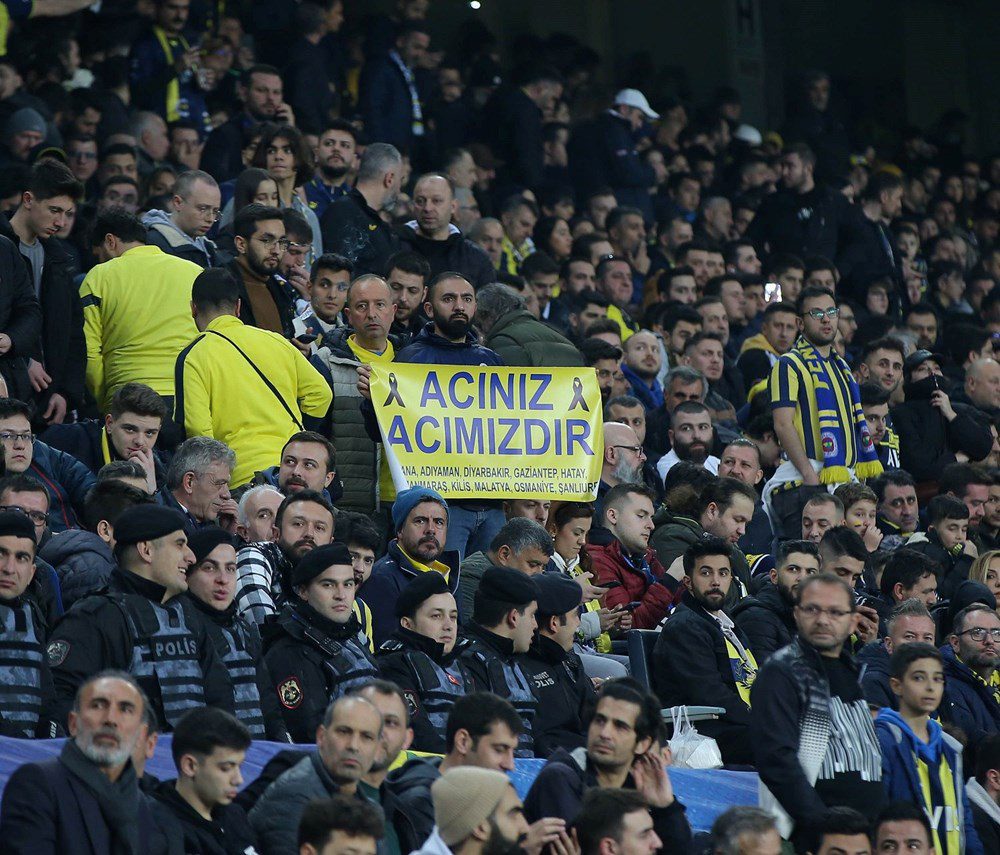 Ülker Stadyumu’ndaki reklam panoları ve skorboardlarda deprem felaketinde vefat eden dernek üyeleri, çalışanlar ve taraftar gruplarının isimleri ile “Yaraları Birlikte Saracağız”, “Bizim Canımız Türkiye” ve “Ülkemizin Başı Sağ Olsun, Hepimize Geçmiş Olsun” yazıları yer aldı.