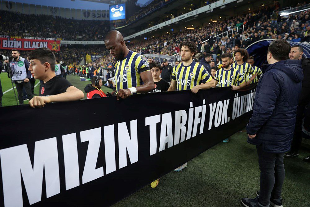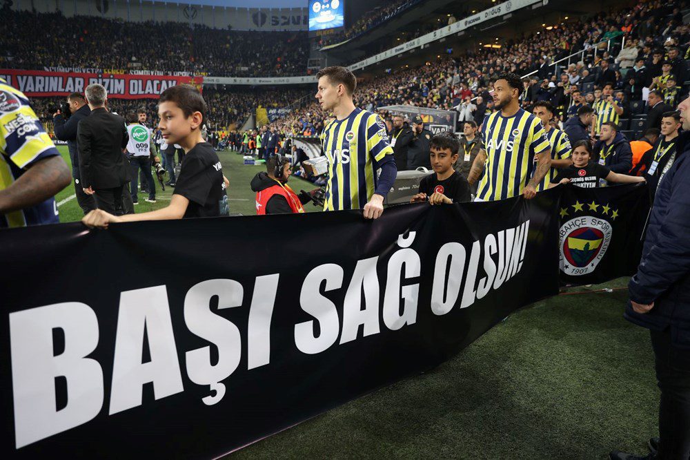Konyaspor seremoniye “Futbol Ailesi 1 Mart’ta Canlı Yayında #OmuzOmuza”, Fenerbahçe ise “Acımızın Tarifi Yok Ülkemizin Başı Sağ Olsun” yazılı pankartla çıktı.