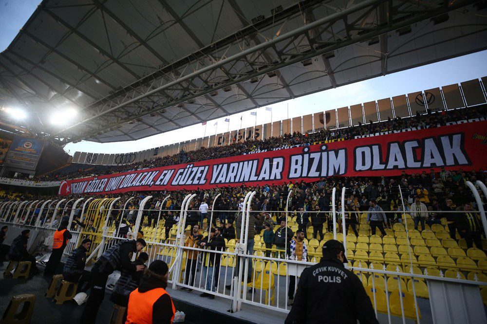 Doğu Tribünü’nde (Maraton Tribünü) “Acımız Tarifsiz, Başımız Sağ Olsun”, Güney Tribünü’nde (Okul Açık Tribünü) ise “Yaşaran Gözler Umut Dolacak, En Güzel Yarınlar Bizim Olacak” pankartı açıldı.