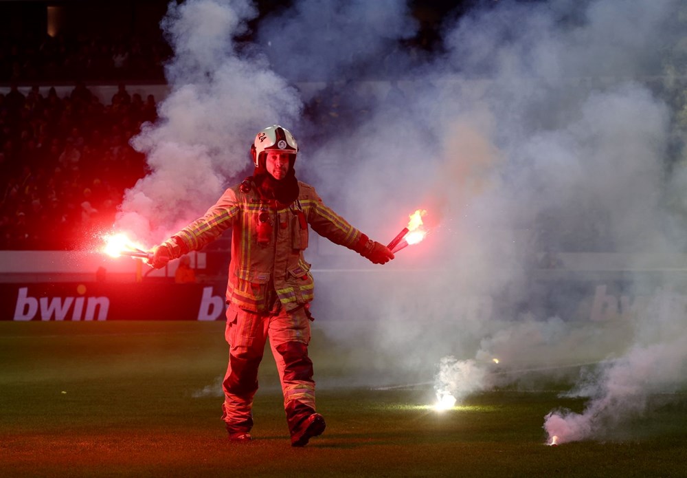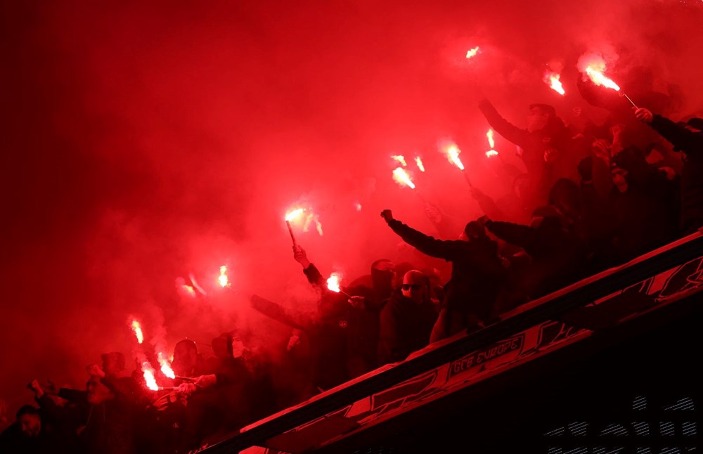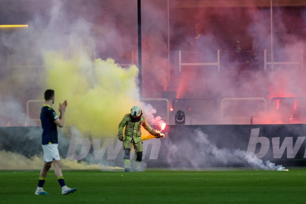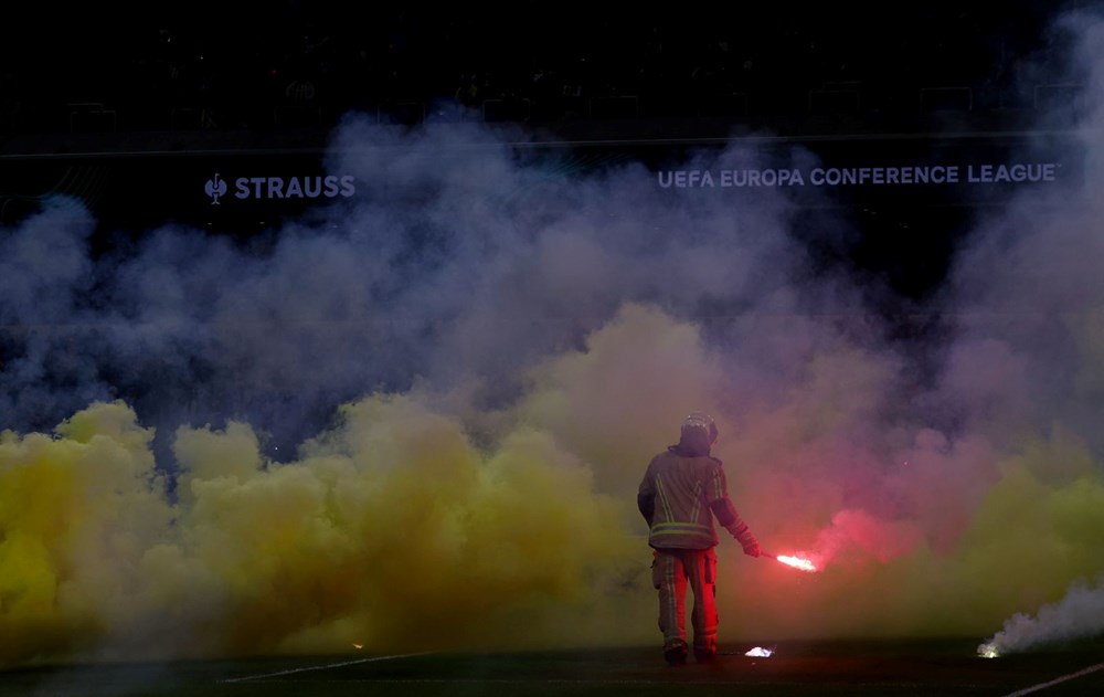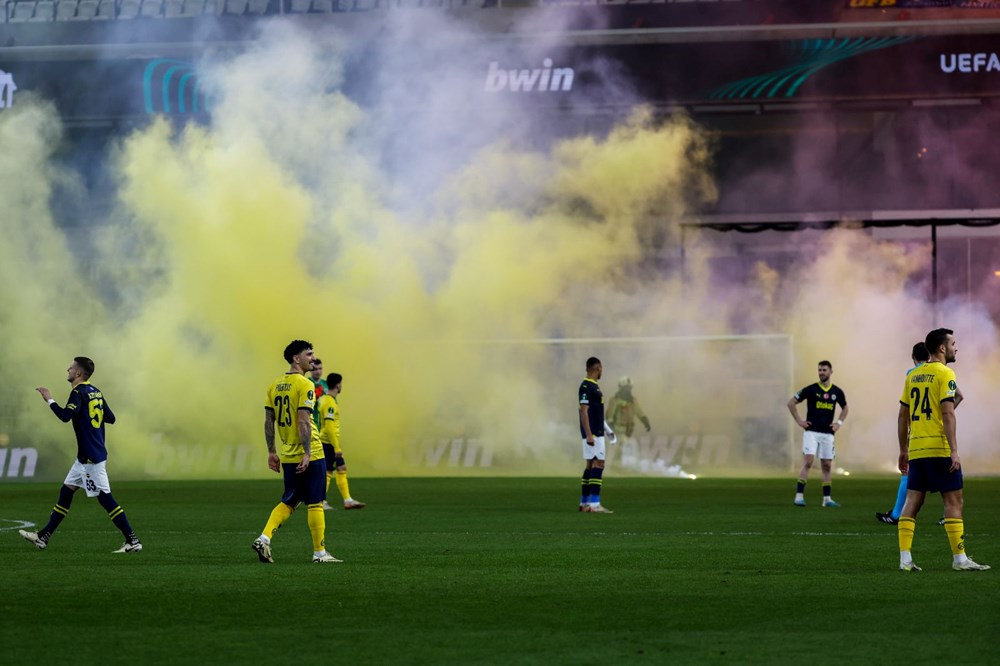 Sahaya atılan meşaleler nedeniyle Union Saint-Gilloise-Fenerbahçe maçının birinci dakikaları kısa mühlet durdu. Karşılaşmanın birinci dakikalarında Fenerbahçe deplasman tribününün meşale ve yabancı unsurlar alana atıldı.