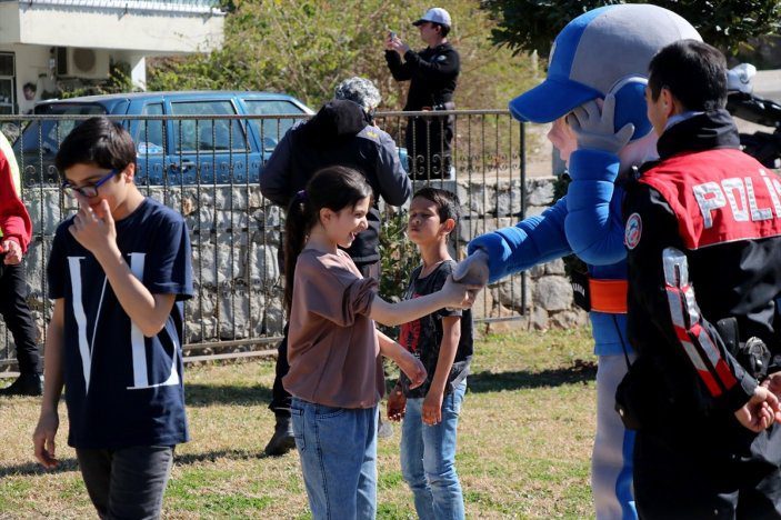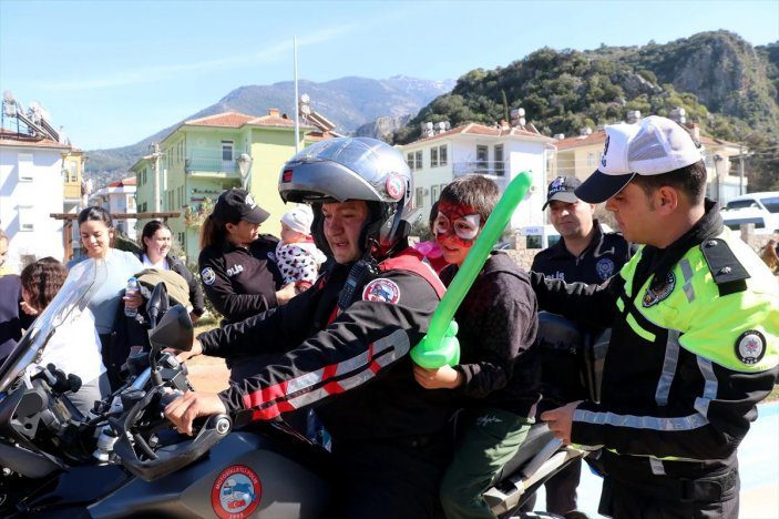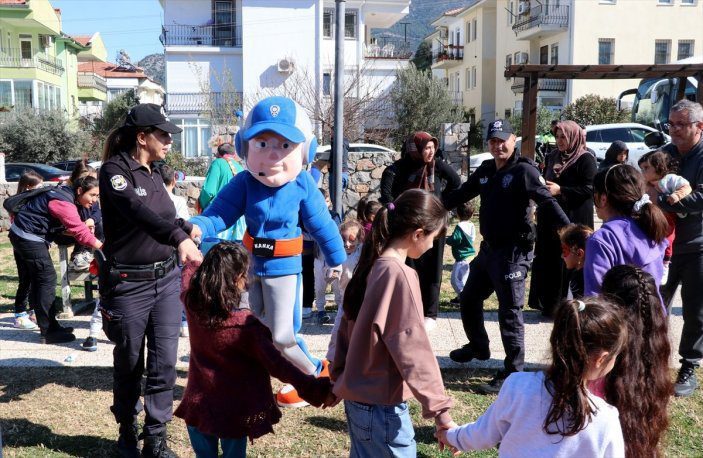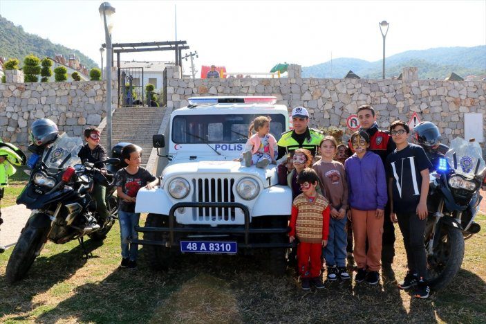 Fethiye İlçe Emniyet Müdürlüğü’nce düzenlenen etkinlikte, Trafik Eğitim Parkı’na getirilen çocuklar, palyaçoyla oyun oynadı.