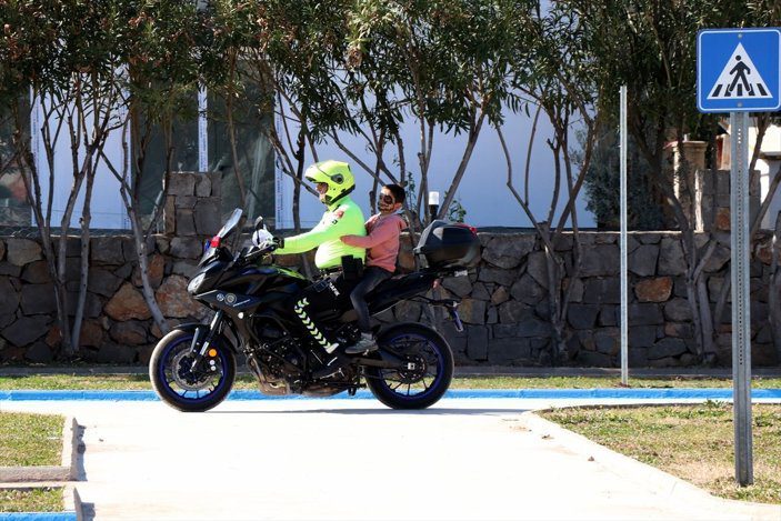 Polis motosikletiyle parkta gezdirildiler