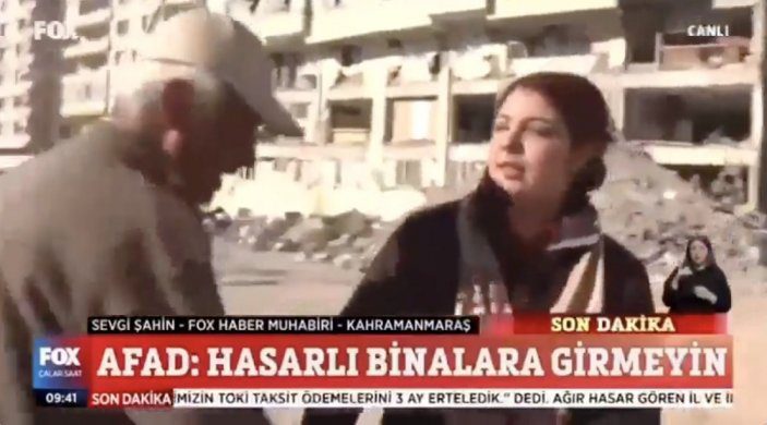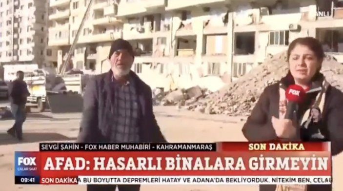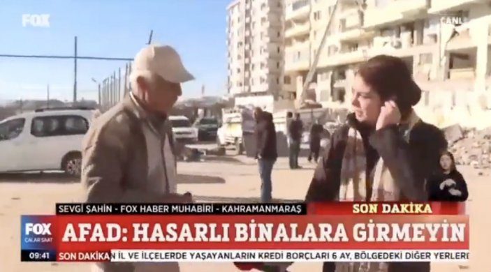 Yaptığı provakatif yayınlarla dikkat çeken Fox TV muhabiri kendisine mikrofon uzatılan depremzedenin, “Yapmayın insanlar ölmüş yapmayın ya.” tepkisiyle karşılaştı.