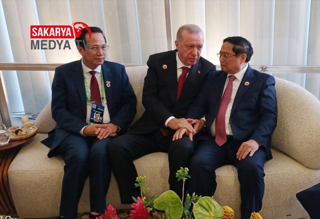 Cumhurbaşkanı Erdoğan, G20 Önderler Doruğu kapsamında Asyalı devlet başkanı ve başbakanlarla bir ortaya geldi. Erdoğan’ın başkanlarla olan görüşmelerinde kameralara yansıyan samimi manzaralar dikkat çekti. Cumhurbaşkanı Recep Tayyip Erdoğan, Brezilya’nın Rio de Janeiro kentinde düzenlenen G20 Başkanlar Doruğu kapsamında bir ortaya geldiği Vietnam Başbakanı Pham Minh ile sohbet etti. Minh ile sohbet eden Cumhurbaşkanı Erdoğan protokol kurallarının tersine Minh ile diz dize oturdu. Erdoğan, Çin Devlet Başkanı Xi Jinping ile görüşmesinde ise Çin önderinin koluna sarıldı. Malezya Devlet Başkanı Enver İbrahim ile olan toplantısında da İbrahim’in elinden tutan Cumhurbaşkanının bu kareleri dikkat çekti.