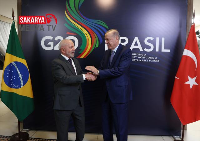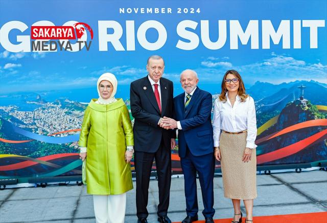 Cumhurbaşkanı Recep Tayyip Erdoğan, G20 Önderler Tepesi için dün akşam saatlerinde Brezilya’nın Rio de Janeiro kentine ulaşmıştı. Dün Brezilya Devlet Başkanı Lula da Silva ile görüşme gerçekleştiren Cumhurbaşkanı Erdoğan, bugün ise G20 Başkanlar Tepesi’ne katıldı. Tepe öncesi önderler tek tek karşılandı. Doruğa katılmak üzere alana eşi Emine Erdoğan’la birlikte gelen Cumhurbaşkanı Erdoğan, Brezilya Devlet Başkanı Lula da Silva tarafından resmi merasimle karşılandı.