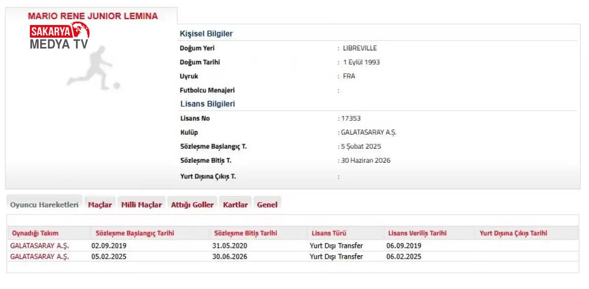 Galatasaray, geçtiğimiz gün yeni transferini duyururken, oyuncuyu Türkiye Futbol Federasyonu’na (TFF) bildirdi. Lemina’nın lisansı çıktı.