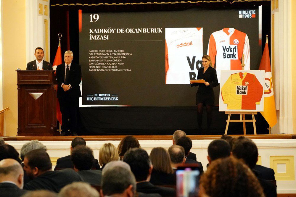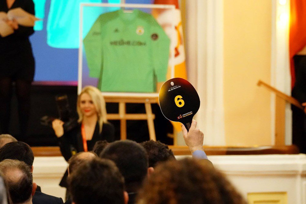 Müzayedede Galatasaray Başkanı Dursun Özbek, Galatasaray yönetim kurulu üyeleri, Galatasaray Teknik Direktörü Okan Buruk ve katılımcılar yer aldı.