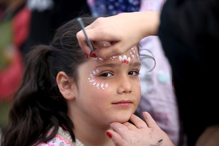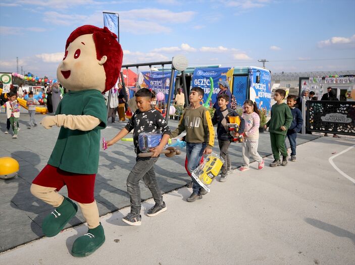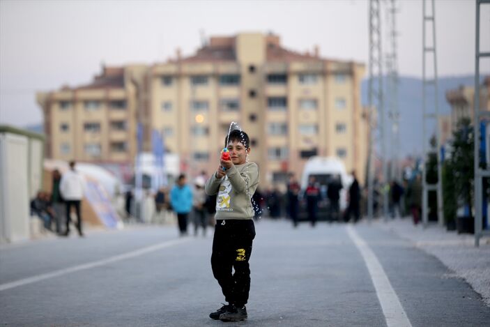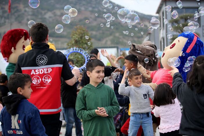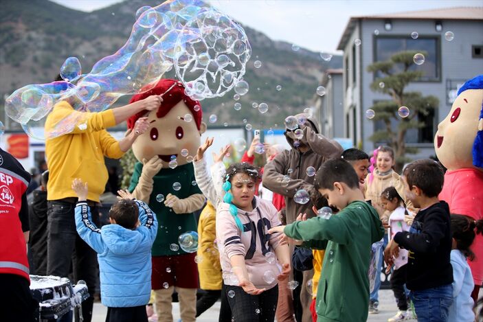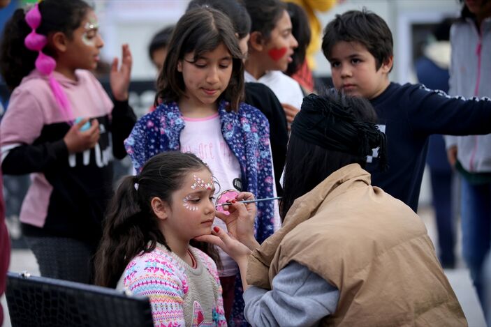 Konteyner kentte kalan çocuklar, gönüllüler tarafından düzenlenen etkinliklerle eğleniyor.