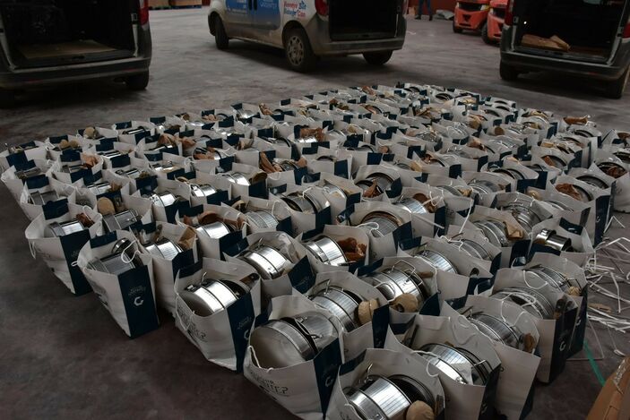 Bu kez de depremzedelere, metal tencere, tava, tabak, bardak, çatal, kaşık, bıçak ve kepçeden oluşan mutfak seti oluşturdu.