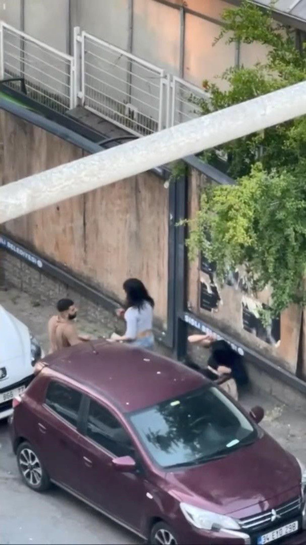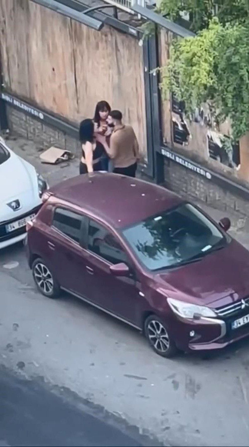 Yaşananlar cep telefonuyla kaydedilirken, üç kişi daha sonra sokaktan ayrıldı.