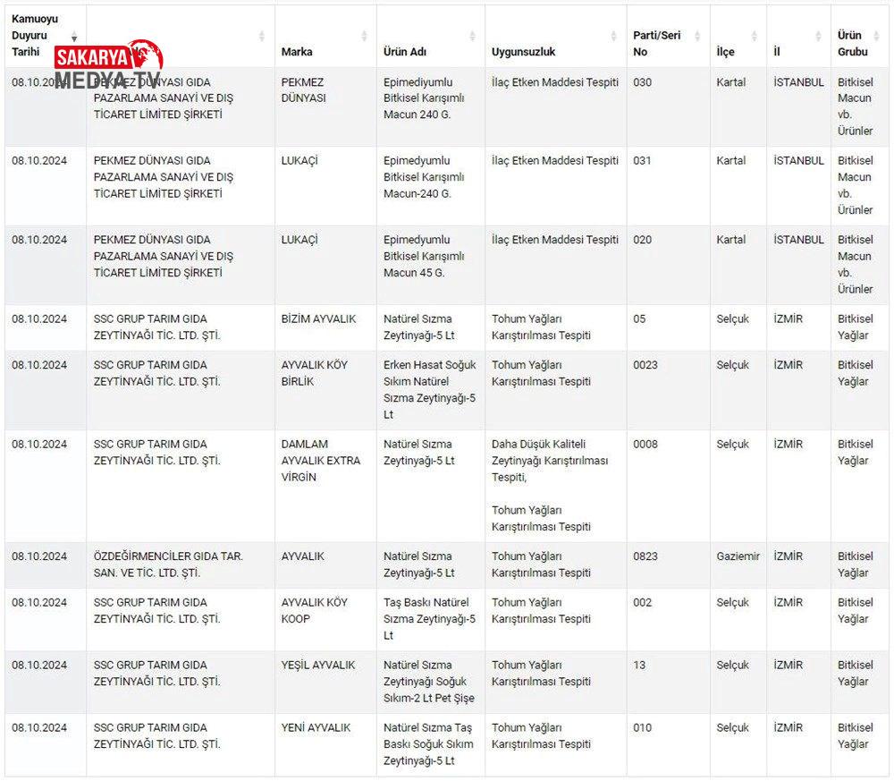 İşte sıhhati tehlikeye düşürecek taklit-tağşiş yapılmış eserler listesine bugün eklenenler ve evvelki günlere ilişkin marka ve eserleri…