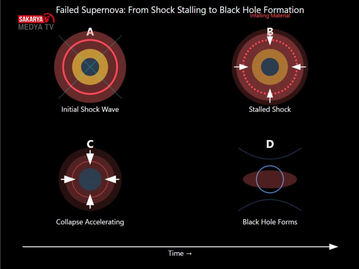 Başarısız süpernovalar, yıldızın çekirdeğinin çökmesi sırasında oluşan nötrino şokunun yine canlanmaması durumunda meydana gelir. Bu durumda, yıldızın dış katmanları patlamak yerine içe gerçek çöker ve bir kara delik oluşturur.