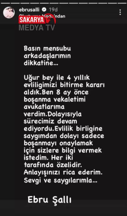 EBRU ŞALLI’DAN BOŞANMA PAYLAŞIMI