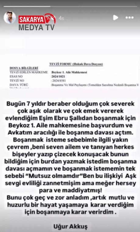 Evlilikleri üzerinde uzun süredir kara bulutlar dolaşan Ebru Şallı ile Uğur Akkuş çiftinden kötü haber geldi. İş insanı Akkuş, eşi eski manken Şallı’dan boşanma kararı aldığını sosyal medya hesabından yaptığı paylaşımla duyurdu.
