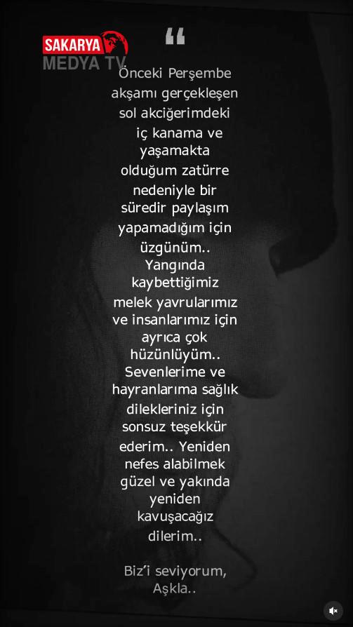 “Önceki Perşembe akşamı gerçekleşen sol akciğerimdeki iç kanama ve yaşamakta olduğum zatürre nedeniyle bir süredir paylaşım yapamadığım için üzgünüm…