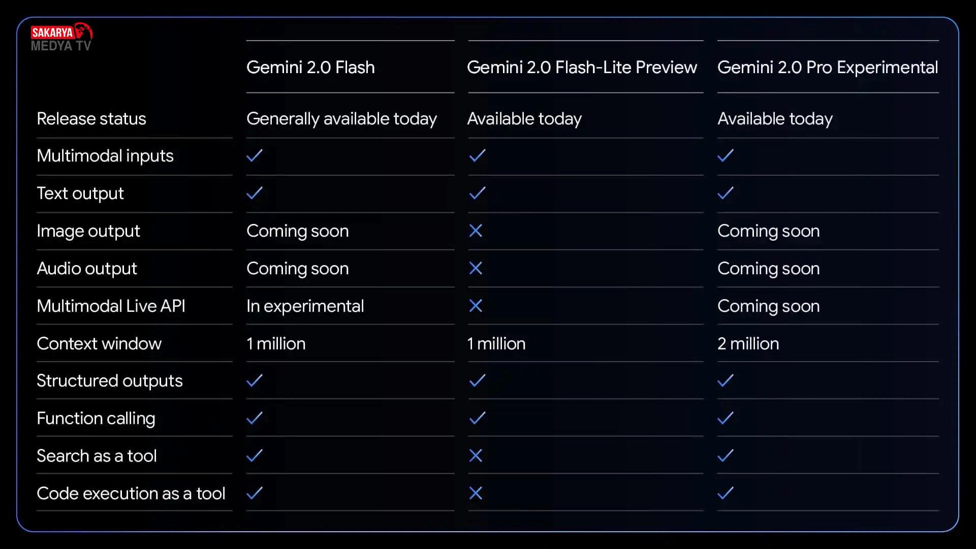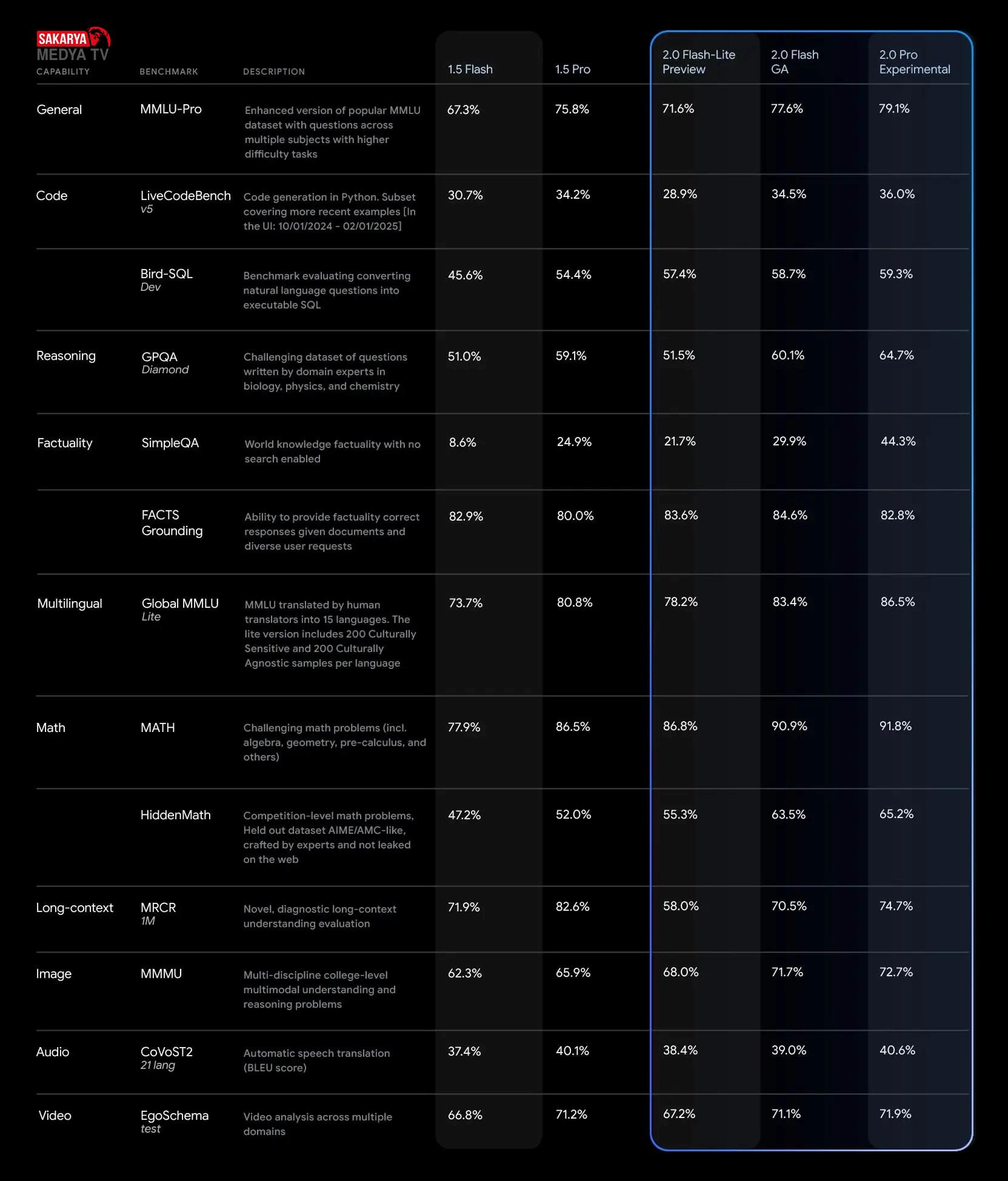 Son olarak Google, hız ve fiyat açısından 1.5 Flash ile aynı seviyede olan ve kıyaslama sonuçlarında daha iyi performans gösteren 2.0 Flash-Lite isimli düşük maliyetli modelini AI Studio ve Vertex AI kullanıcılarına genel önizleme sürümü olarak kullanıma sundu.