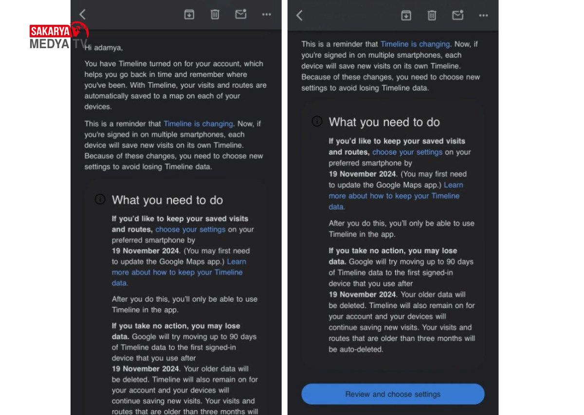E-postada konum geçmişini saklamak için bir bağlantı yer alıyor, ancak bazı kullanıcılar bu seçeneği seçmelerine rağmen Zaman Çizelgesi verilerinin silindiğini bildiriyor.