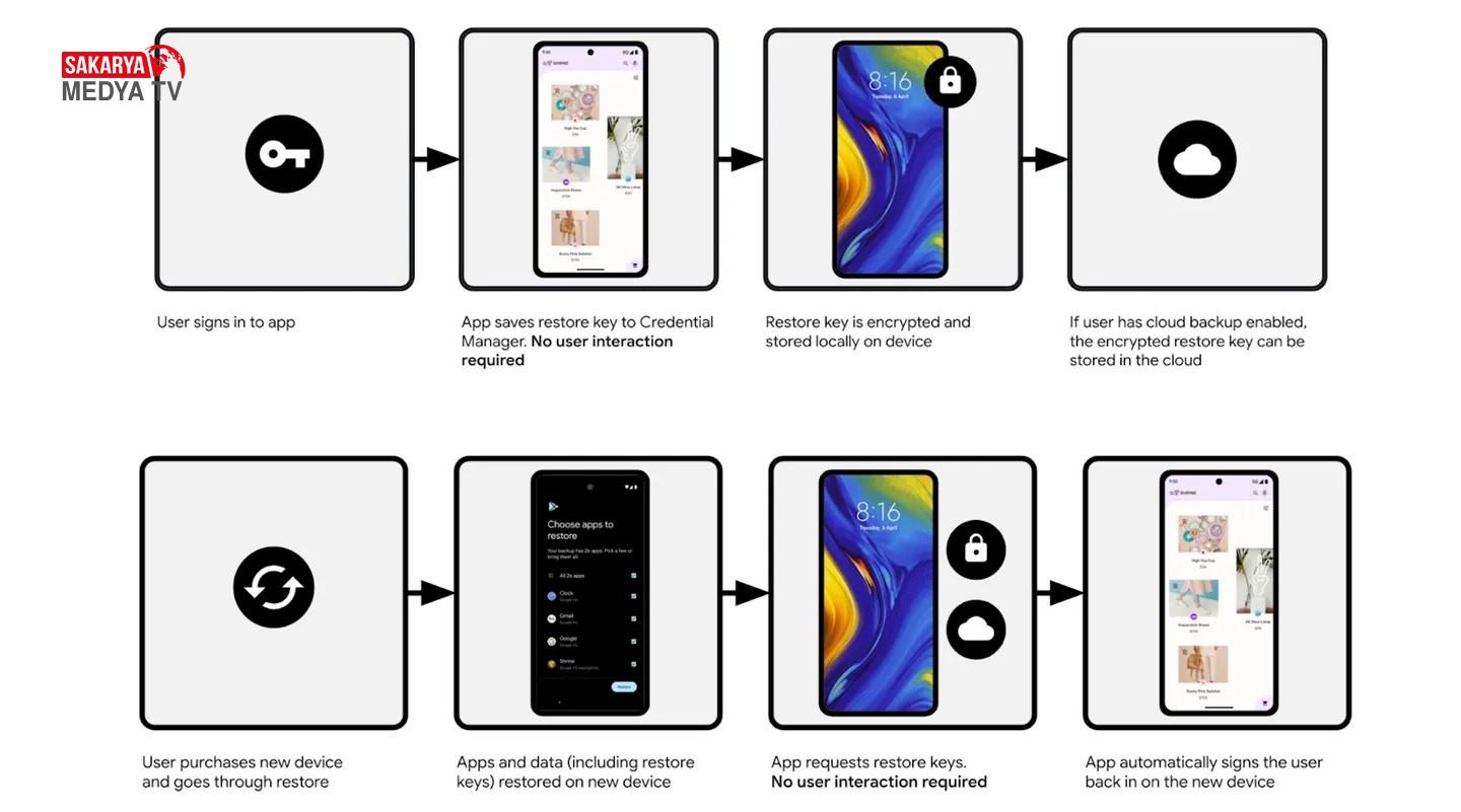 Google’ın duyurusuna göre Credential Manager API sistemine entegre olacak Restore Credential özelliği, eski Android telefondan yeni Android telefona olan geçiş sürecini iyileştirmeyi hedefliyor. Yeni özellik, bulut yedekleme özelliğiyle saklanan “restore key” adını taşıyan bir anahtar sayesinde çalışacak ve bu anahtar, kullanıcı yeni bir cihaz kurduğunda otomatik olarak geri yüklenecek. Böylece, uygulamalara yeniden giriş yapma ihtiyacı da ortadan kalkmış olacak.