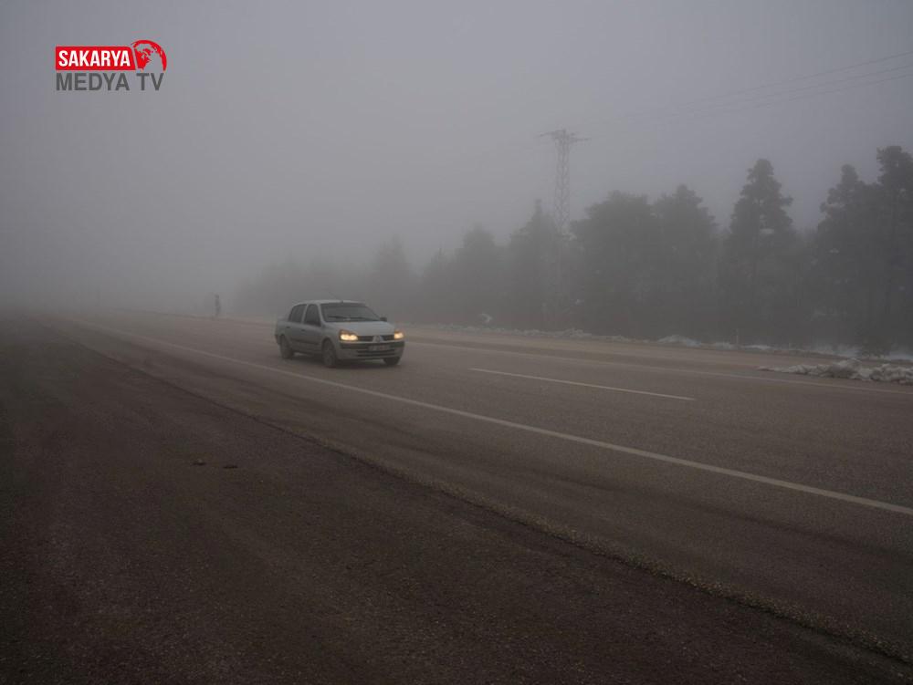 Sürücüler sisle kaplanan yolda dörtlü flaşörlerini yakarak ve suratlarını düşürerek ilerleyebiliyor Sisin bölgede gün boyunca tesirli olması bekleniyor.
