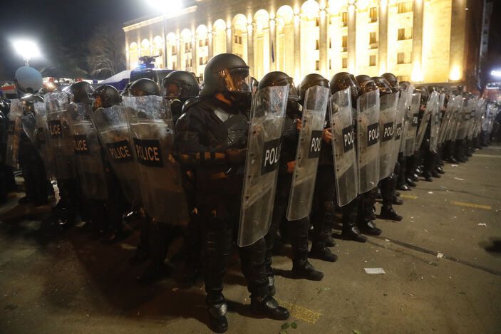 Gürcistan’ın başkenti Tiflis’teki parlamento binası önünde akşam saatlerinde “Yabancı Etkinin Şeffaflığı Hakkında” yasa tasarısının onaylanmasının ardından gerçekleştirilen protestoda yaşanan şiddet olaylarının bilançosu belli oldu. Gürcistan İçişleri Bakanlığından yapılan açıklamada, çıkan olaylarla ilgili soruşturma başlatıldığı duyuruldu. Açıklamada, “Parlamento binası önündeki protestoda 66 kişi gözaltına alındı, yaklaşık 50 polis yaralandı, bazıları ameliyat edildi. Protestocular, kanunun ifade özgürlüğü ve barışçıl gösteri için sunduğu çerçevenin dışına çıkarak şiddete başvurdu. Polis bazen güç kullanmak zorunda kaldı.” ifadeleri kullanıldı.