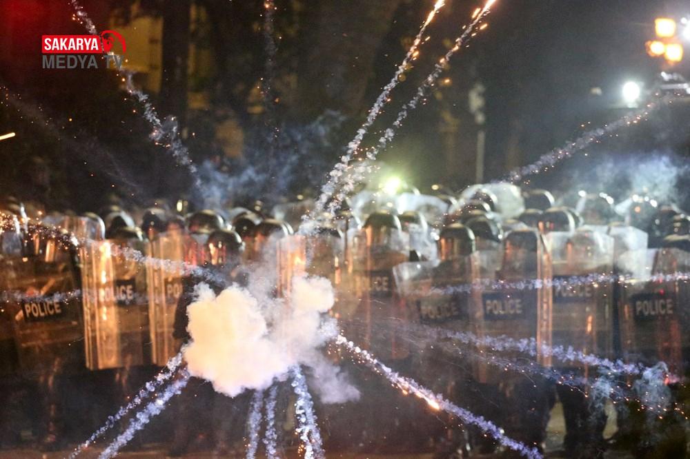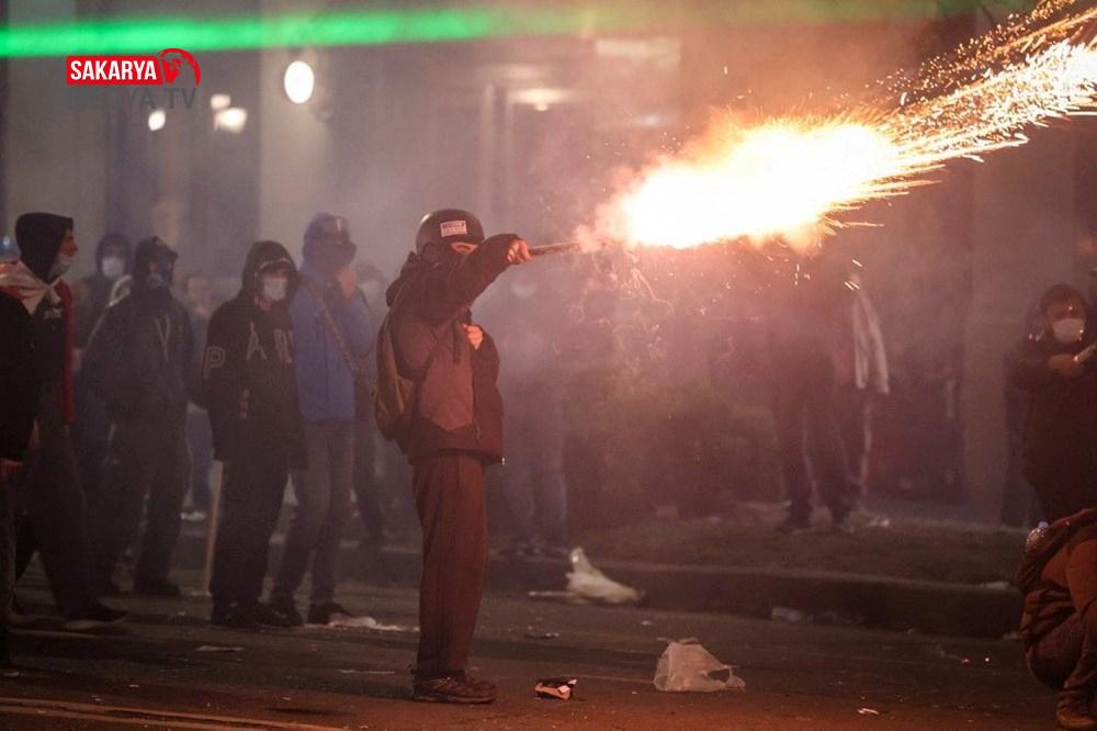 Bazı göstericiler ise piroteknik ve molotof kokteyli atmaya başlayınca polis parlamentonun önündeki caddeyi denetimi altına aldı.