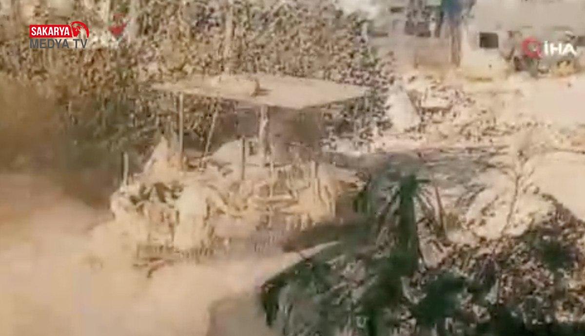 Beyt Lahya kenti yakınlarında bekleyen İsrail’e ilişkin tank ve askeri buldozerler, Kassam Tugayları’nın maksadı oldu.