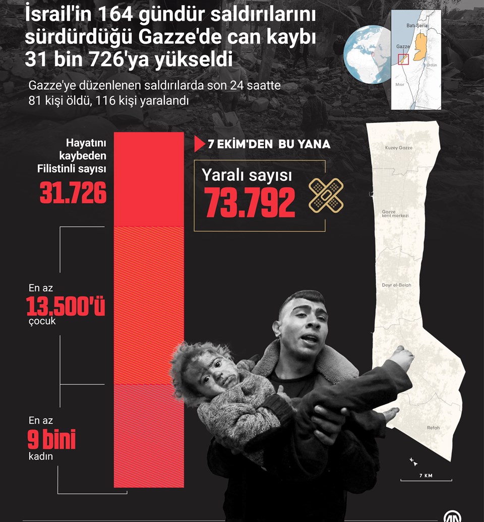 İsrail ordusu dün, kara işgalini sürdürdüğü Gazze Şeridi’nin merkezinden kuzeyine insani yardımlara eşlik eden mahallî takımları amaç aldığı taarruzda 23 Filistinliyi öldürmüştü.