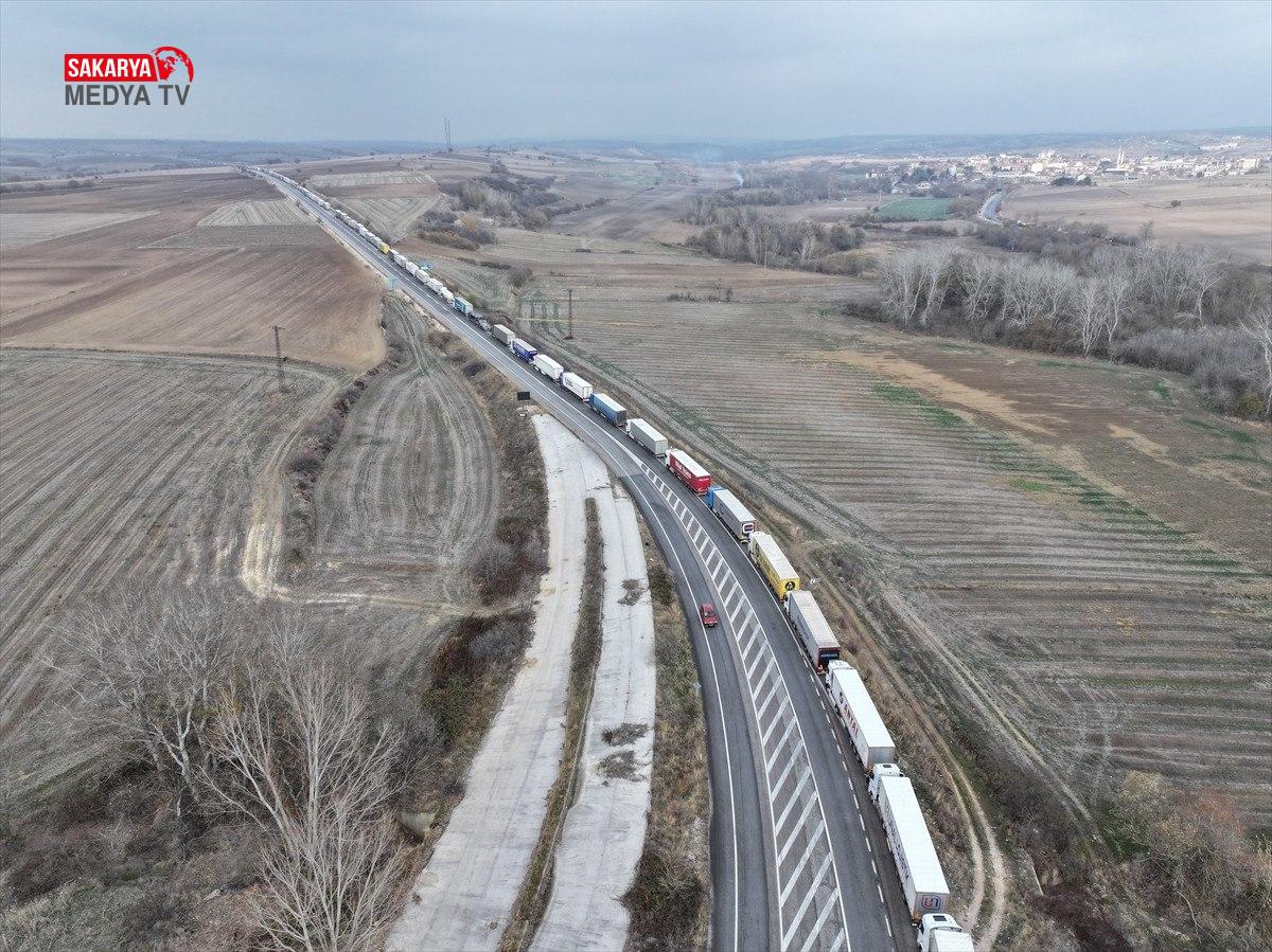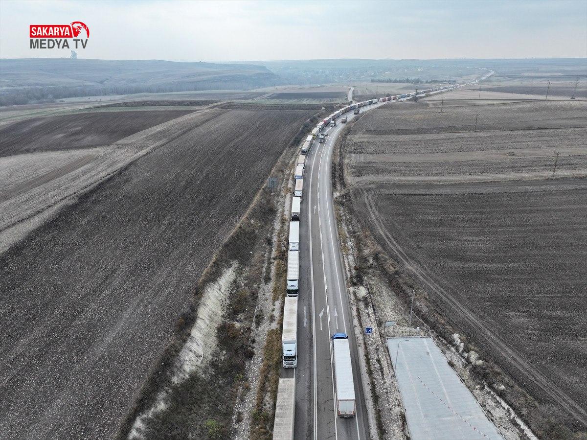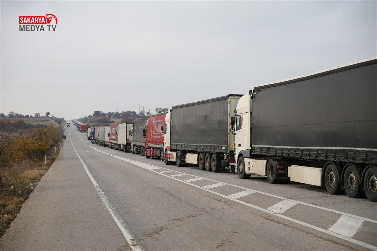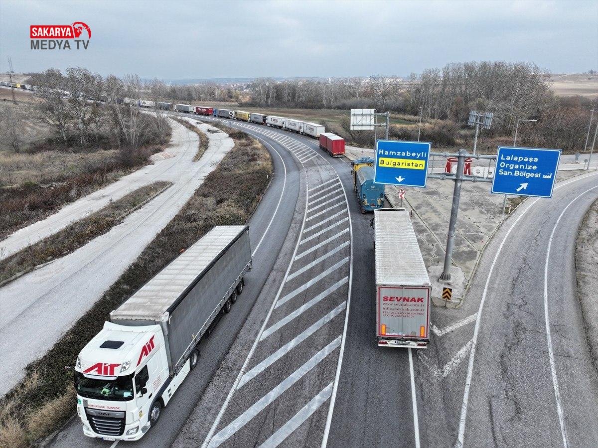 Hamzabeyli Hudut Kapısı’nda Avrupa’ya geçiş için yüzlerce tır şoförü araçlarında bekleyişlerini sürdürüyor.