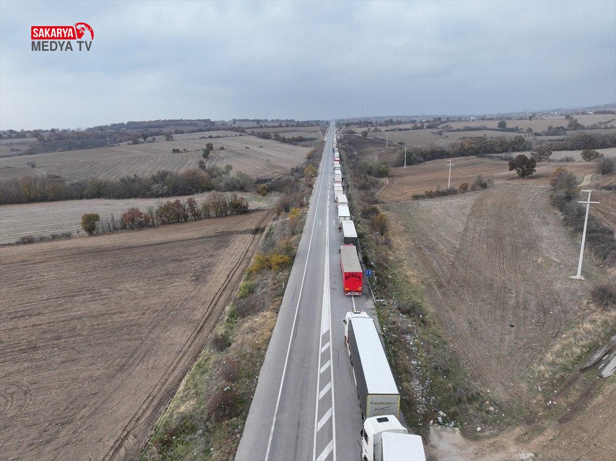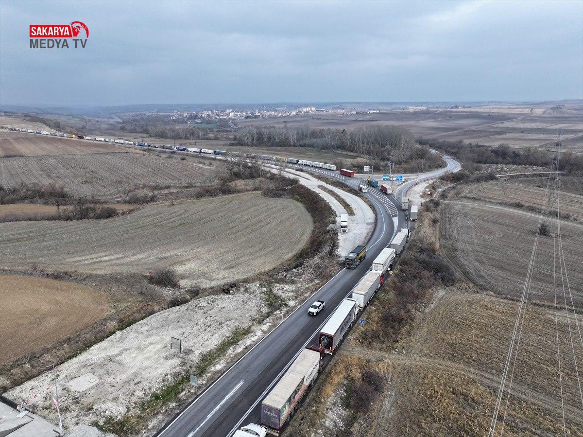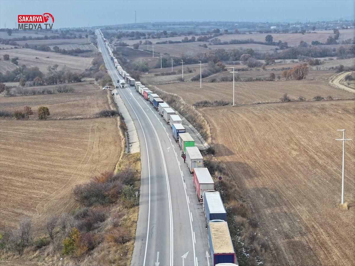 Hamzabeyli Hudut Kapısı’nda Avrupa’ya geçiş için yüzlerce tır şoförü araçlarında bekleyişlerini sürdürüyor.
