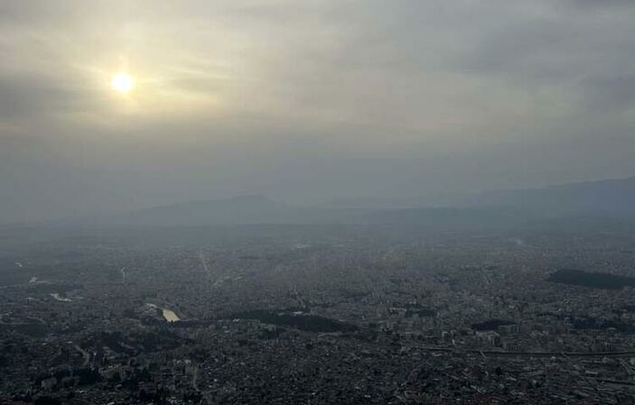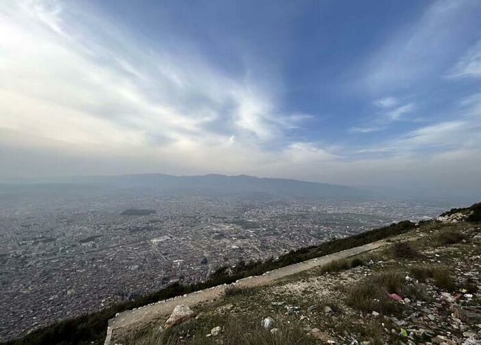 Kentin kuş bakışı görüldüğü tarihi Antakya Kalesi’nden enkazdan kalkan tozun yoğunluğu dikkat çekti. Tozlardan korunmak için hem iş makinelerini kullanan ekipler hem de bölgede güvenliği sağlamakla görevli asker ve polisler maske takıyor.