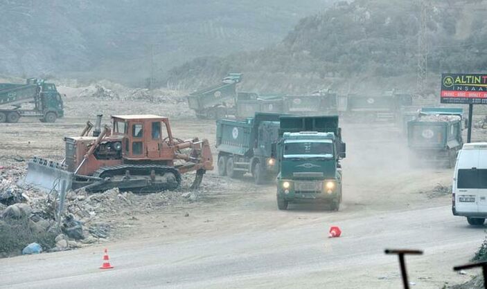 Türkiye genelinden hem kamu kurum ve kuruluşları hem de özel firmalara ait kepçe, iş makineleri ve moloz taşıyıcı kamyonları ile enkaz molozları kaldırılmaya devam ediliyor. Antakya’da tarihi Antakya Kalesi’nin arkasındaki alana, Samandağ’da ise Deniz Stadyumu kenarında belirlenen alanlara moloz dökülüyor. Binlerce iş makinesi ve kamyon ile enkaz kaldırma çalışmalarının gün boyu sürdürüldüğü Hatay’ın üzeri ise toz bulutuyla kaplandı.