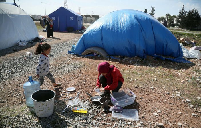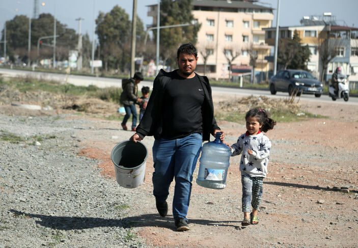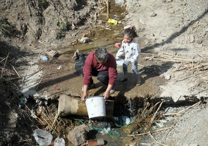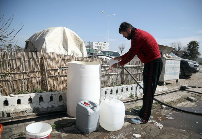 Çadır veya konteyner kent dışındaki alanda kurdukları çadırlarda yaşayan Suriyeli depremzede aile ise su ihtiyaçlarını yakındaki küçük dereden sağlamaya çalışıyor.