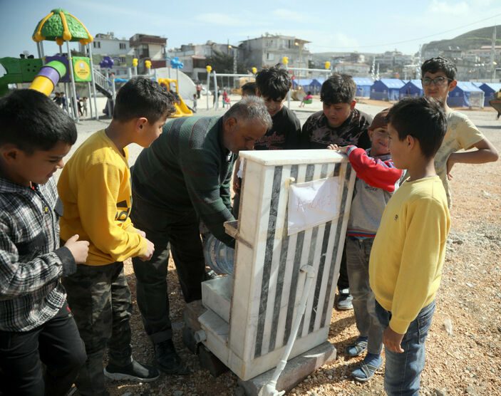 Öte yandan birçok noktaya kurulan veya kurulumu devam eden çadır veya konteynerlerde alan altyapısı, su ve elektrik şebekelerine bağlanıyor. Çadır ve konteyner kentlerde oluşturulan su depolarına, tankerle su getiriliyor ve banyo, tuvalet, çamaşır gibi ihtiyaçlarda kullanılıyor.