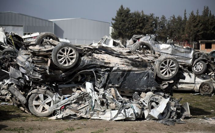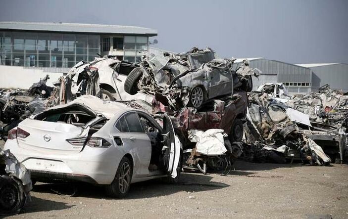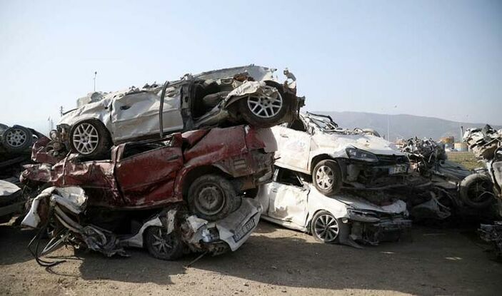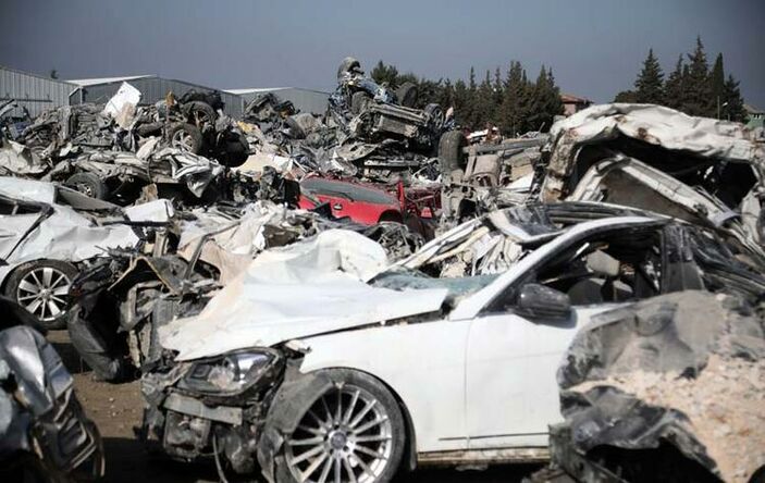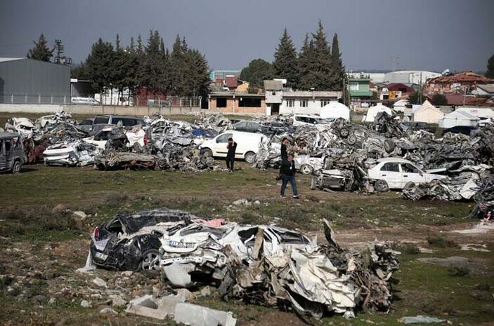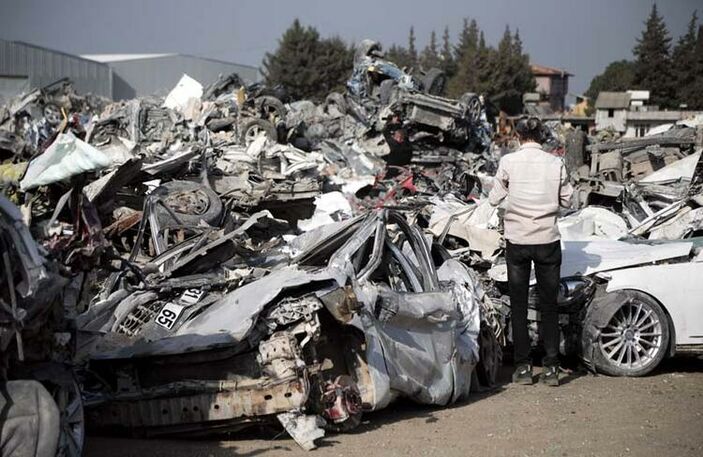 Araç mezarlığına dönüşen alanlarda büyük hasar almış yüzlerce araç bulunuyor.