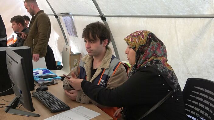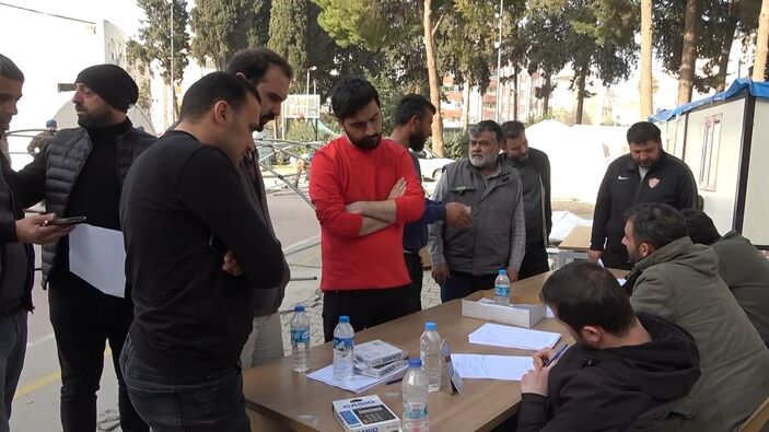 AFAD gönüllüsü görevli öğretmen Aslan Talay, “Vatandaşlar bu noktaya deprem nedeniyle yıkılan işyeri ve araç hasarı için geliyor.