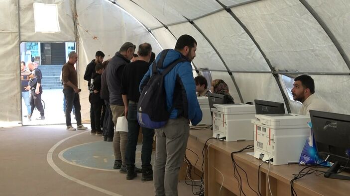 Deprem sebebiyle araçları hasar gören depremzedeler çadır önünde uzun kuyruklar oluşturdu. Hasar tespit çalışması için gelen vatandaşlar, “Deprem nedeniyle oluşan zararın kayıtlarını tutturmak için buraya geldik.