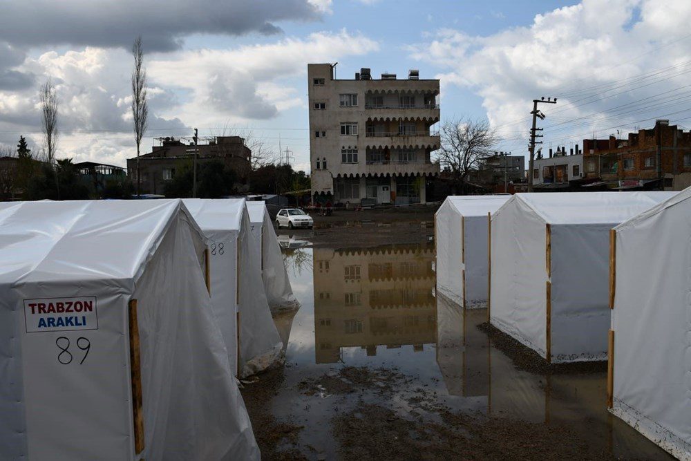 Çadırların olduğu bazı bölgelerde su birikintileri oluşturdu.