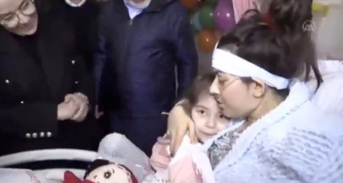 İrem Bağrıaçık da depremde ayağının dolabın altında kaldığını belirterek, “Deprem sırasında dedemde üstüme yatmış. Annemin de dolapta eli kaldı. Annemi çok özlemiştim. Çok sevindim.” dedi.