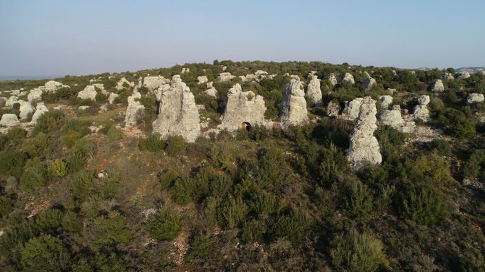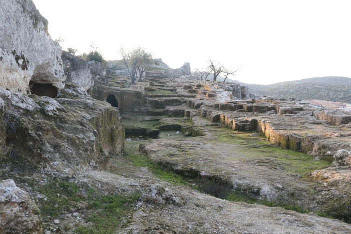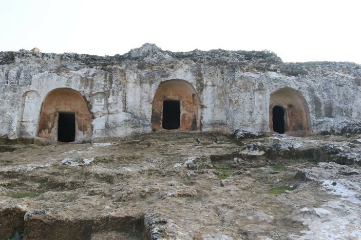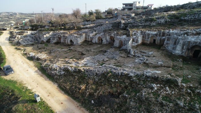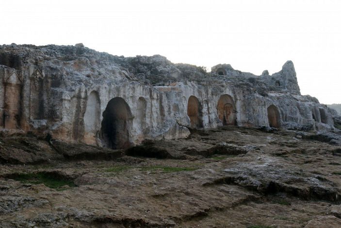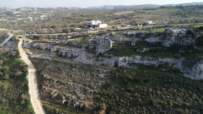 Hatay ilçe merkezine yaklaşık 7 kilometre uzaklıkta, 75 bin metrekarelik alanı kapsayan, tarihi mirası ve coğrafi güzellikleriyle ilgi gören Gelinler Dağı Nekropol Alanı’ndaki Roma dönemine ait kaya mezarları, 4 büyük depreme rağmen hasar almadı.