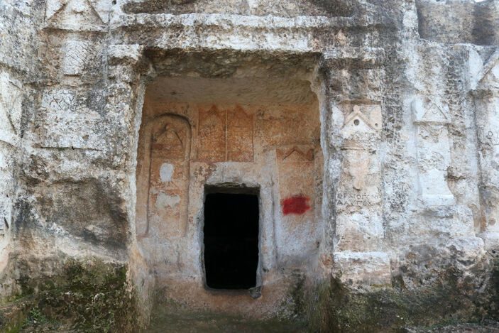 Kaya mezarlarının her odasının önünde, ölen kişilere ilişkin bilgiler yer alıyor.