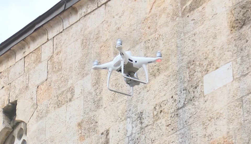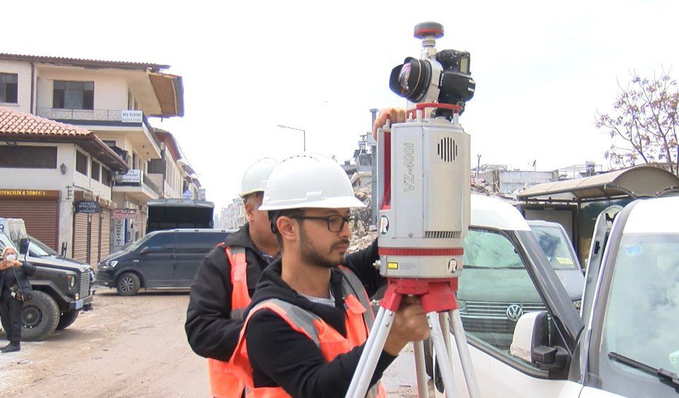 Harita Mühendisi Mücahit Yılmaz, “Yaptığımız çalışmalar daha çok fotogrametri ve lidar olarak adlandırılan, genelde harita mühendisleri tarafından yürütülen bir çalışma prensibi. İlk olarak lazer tarayıcı ile yersel olarak çevredeki binaların ve asıl önemli olan yapının üç boyutlu olarak görüntülenmesi. Bunlara bakılarak oluşturulacak ürünle hasar tespit çalışmalarının yapılması. Aynı şekilde dron ile fotogrametrik yöntem ile alınan görüntülerle, fotoğraflar gerekli aşamalardan geçerek daha sonrasında yapının gerekli şekilde modelinin üretilerek aynı şekilde hasar tespit çalışmaları yapılıyor.