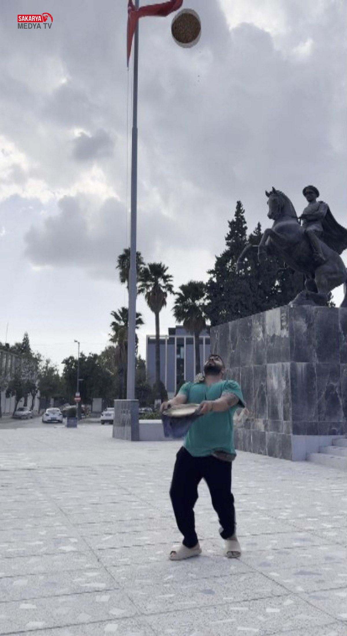 Künefeye havada 10 takla attırmayı başaran künefe ustası olan Nuri İmren, “Künefe ustasıyım ve Köprübaşı’nda künefeci dükkanım var. Gastronomi kenti olan Hatay’da birinci akla künefe gelir.