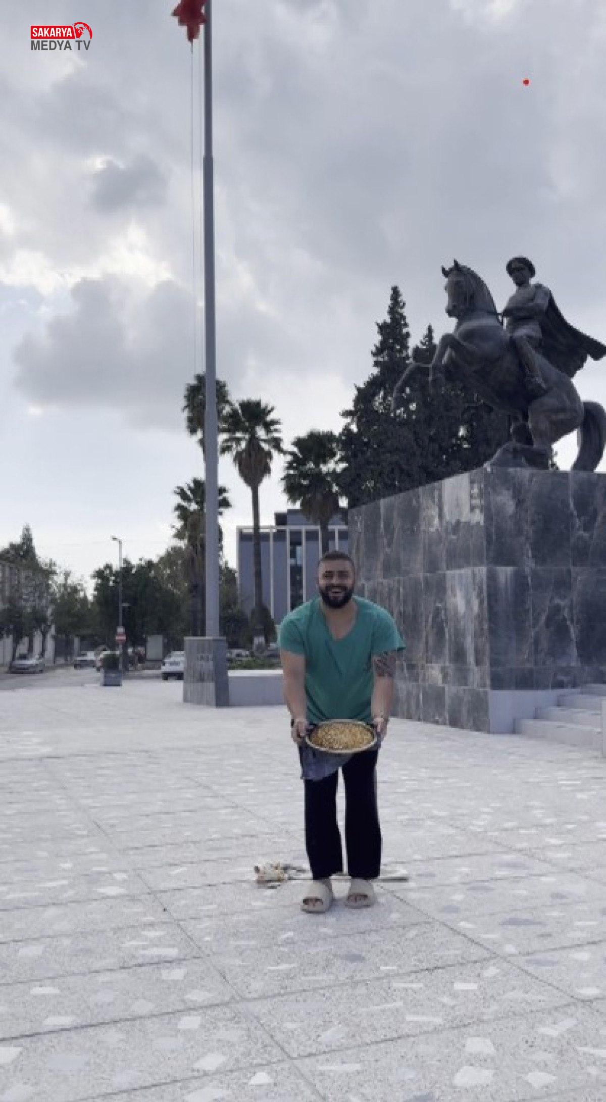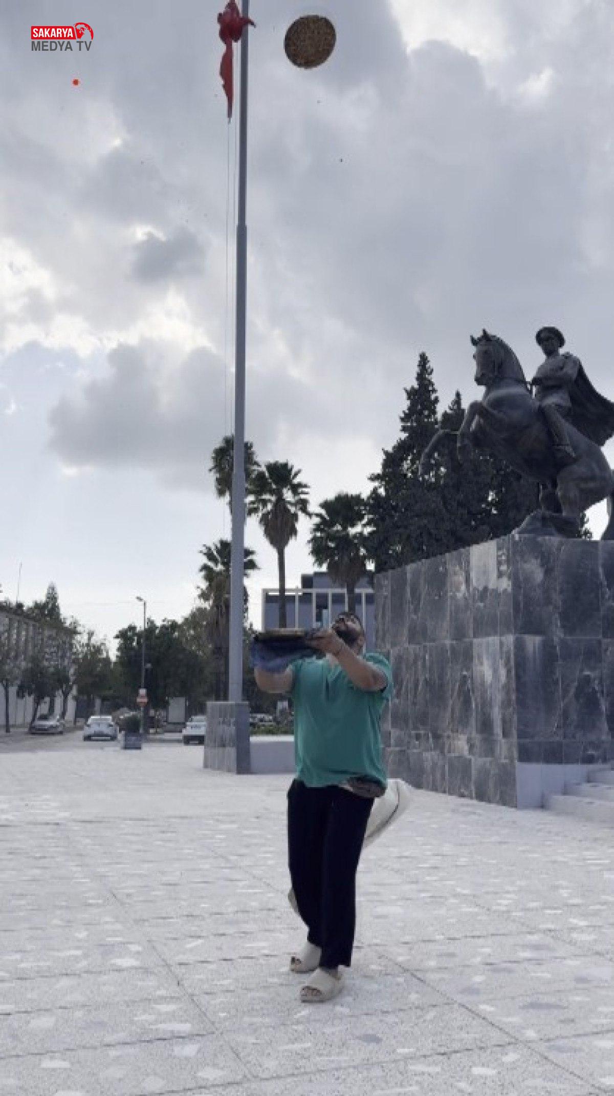 Arkadaşlarla teze girmiştik bir künefeye kaç takla attırırsın diye. Ben de Nuri Usta atar dedim. Künefe tepsisini alıp Köprübaşı’na gittim. Ne kadar uzağa gideceğini bilmiyorum lakin var gücümle tepsiye üst attım.