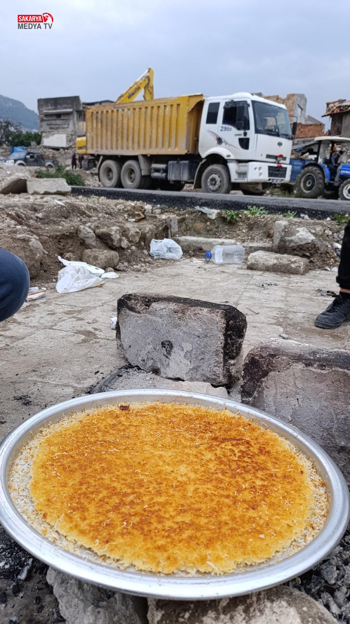 Künefeyi her vakit yapan ve seven biriyimdir. O gün de iş arkadaşlarıma yapmak istedim. Öbür kentten gelen arkadaşlarımıza özgün Hatay künefesi yedirmek istedim. Künefeyi iş yerinde yaptık. Arkadaşlarımıza közde künefe yedirdik. Künefeyi ekskavatörün üstünde atma fikri de kuzenimden geldi. Biraz cümbüş katalım dedi. Bu enkaz yığınların ortasında bize moral olsun istedik. Künefeyi ekskavatörün üzerindeyken atarak çevirdik. O kadar künefe yedim ve çevirdim fakat bu unutulmaz bir an oldu. Atamasaydım rezil olurdum fakat çok şükür şimdiye kadar atamadığımız olmadı. Hoş de oldu. ekskavatör üzerinde de farklılık oldu ve güzel ki de oldu.